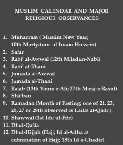 A Brief Introduction to the Muslim Calendar and Major Muslim Festivals and Religious Observances