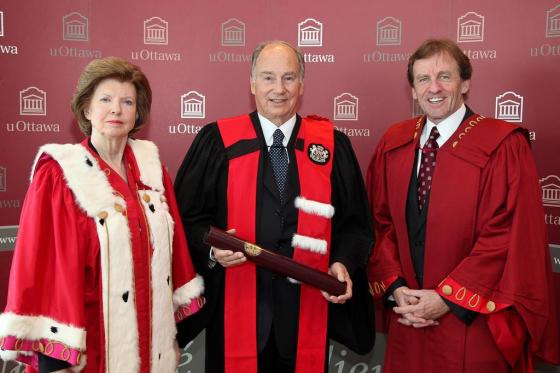 His Highness the Aga Khan with University of Ottawa's Chancellor Huguette Labelle and President Allan Rock. Photo: University of Ottawa. Copyright.