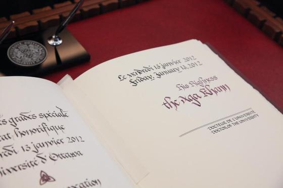 The citation conferring an Honorary Degree on His Highness the Aga Khan at the University of Ottawa on Janaury 13, 2012. Photo: University of Ottawa. Copyright.