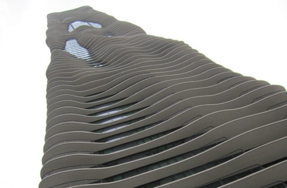 Looking vertically up at a skyscraper in Chicago. Photo: Malik Merchant using Canon Powershot A2200.