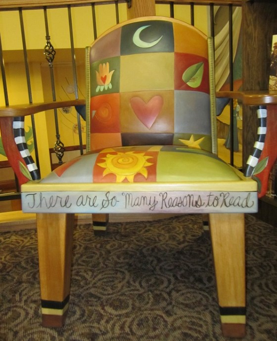 A chair in a bookstore in Rapid City with a clear message about reading. Photo: Malik Merchant using Canon Powershot A2200.