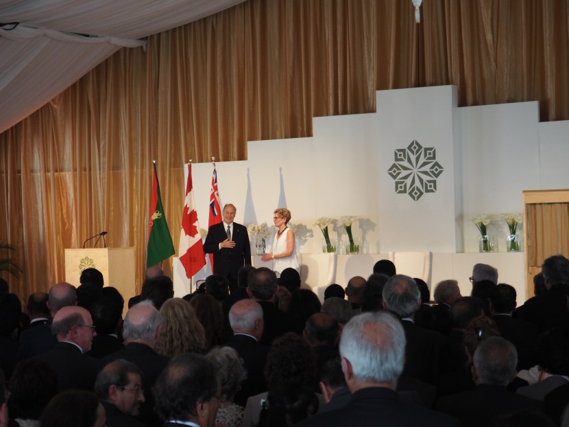 Mawlana hazar Imam graciously acdepts the standing ovation he receives after completing his speech at the opening of the Aga Khan Park on May 25, 2015. Photo: Simerg/Malik Merchant. Copyright.