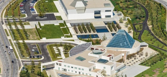 Ismaili Imamat Projects on Wynford Drive, Toronto, Canada. The Ismaili Centre (with glass dome), the Aga Khan Museum and the Aga Khan Park.