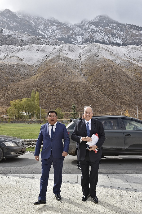 Mawlana Hazar Imam, His Highness the Aga Khan, escorted by Naryn Governor Amanbay Kayipov, arrives to the UCA Naryn Campus. Please click on image for Barakah article and photos.