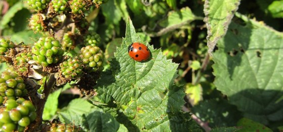 Featured image at top of post: A Ladybird (Coccinellidae) on the leaf of a blackberry bush located on Church Road in the parish of Trimingham, Norfolk, England. Creative Commons Attribution-Share Alike 4.0 International