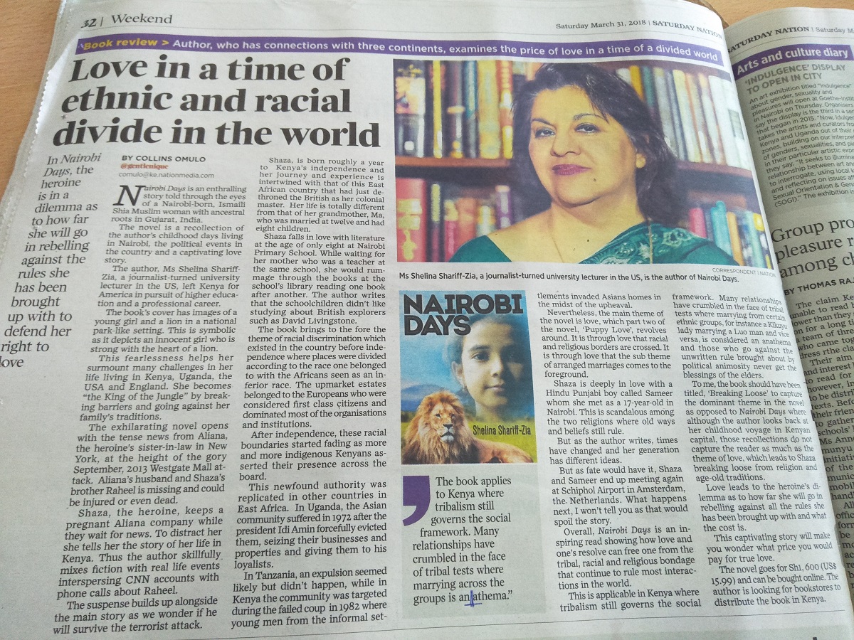 I thoroughly enjoyed reading Shelina Shariff-Zia’s book “Nairobi Days”. This is the best novel I have read (and I have read many, many) about the ways and nuances of the Ismaili Community way of life in East Africa.