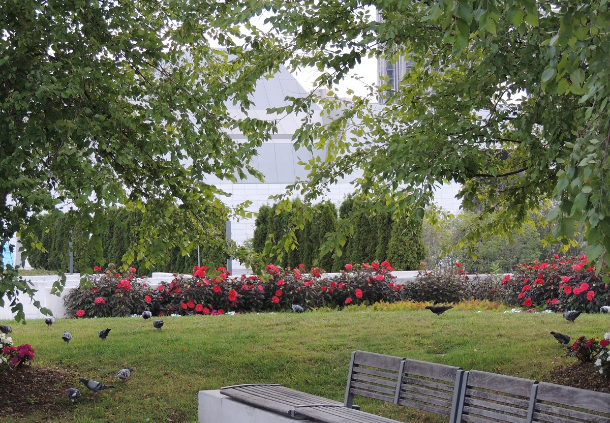 Hibiscus and Pigeons Aga Khan Park, Peace, Power, Compassion, Wisdom Simerg Malik Merchant