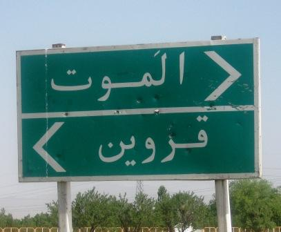 amr03 Published on November 19, 2010 at 407 × 336 in Voices « Previous Next » A road sign: Left arrow pointing to Qazwin and the right to Alamut. Ali Rajput went to Qazwin first to see a museum. Photo: Ali M. Rajput Collection. Like Loading...