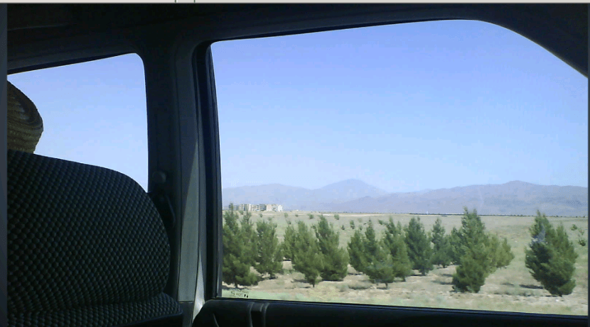 View of Alamut Valley from car window. “Alamut, Alamut,” Ali Raput said in a high pitched voice, as if the valley was familiar to him from before. Photo: Ali M. Rajput Collection