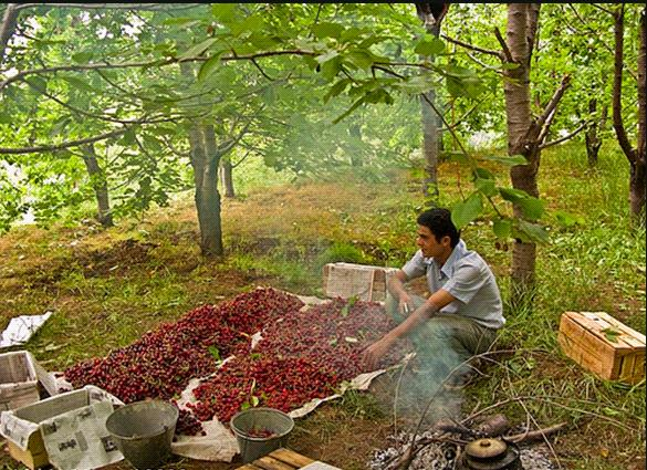 The cherry orchards of the Alamut valley. The cherry grower declined to take money from the visitors and instead gave away a couple of kilos to Ali Rajput in remembrance of the “Old Man of the Mountain” (as Hassan-i Sabbah is popularly known). Photo: Ali M. Rajput Collection)