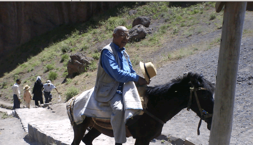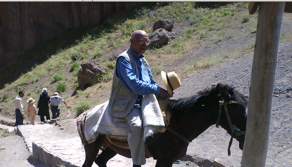 Dr. Ali Rajput riding a horse which took him only half way up. Determined and with encouragement from his son Rajput then walked the remainder of the way up to the peak, even at his age of 84. Photo: Ali M. Rajput Collection
