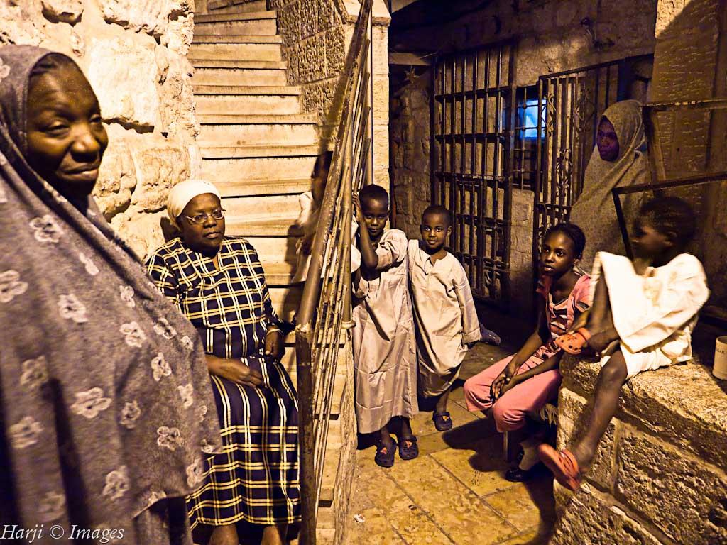 The inhabitants of the African Quarters in Jerusalem are mainly Muslims and describe themselves as African and Palestinian. Most of their ancestors came from Sudan, Nigeria, Chad and Senegal on pilgrimages and stayed on in the holy city. Photo: Muslim Harji, Montreal, PQ. Copyright.