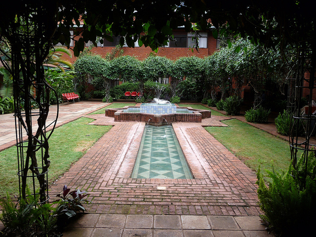 The rather lovely garden with the fountain and brick at the Doctors' Plaza of the Aga Khan Hospital. Photo: Flickr photostream prondis_in_kenya. Copyright: Isabelle Prondzynski