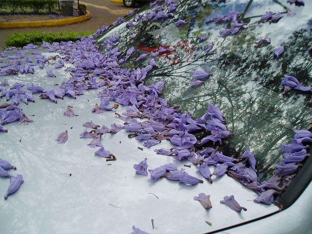 Jacaranda blossom - The most beautiful flowering tree of Nairobi. Kenyatta Avenue and many other city streets and parks (here Aga Khan Hospital) have many jacaranda trees. The flowers are at their best in October each year. Photo: Flickr photostream prondis_in_kenya. Copyright: Isabelle Prondzynski