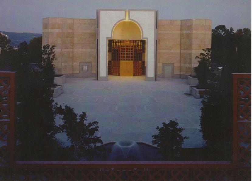 The Ismaili Jamatkhana and Centre. Beautifully Clad in Carrara marble and Italian Sandstone. The beauty of the Jamatkhana is enhanced at night by flood-lit gardens.