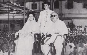 Imam Sultan Mahomed Shah with Begum Om Habiba, Mata Salalmat, and Prince Sadruddin at a Mulaqat with the Karimabad Jamat during his Diamond Jubilee visit to Mumbay