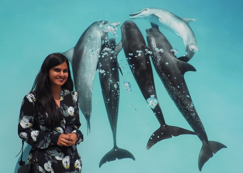 My eyes were immediately drawn to one of the dolphin’s tails, which had a black rope (presumably from fishing equipment) tightly ensnared around it. The rope had been cinched so tight over time that it was now embedded in the dolphin’s skin. My heart sank — such an intelligent yet helpless creature experiencing so much pain and suffering due to mankind’s irresponsibility with its creation.