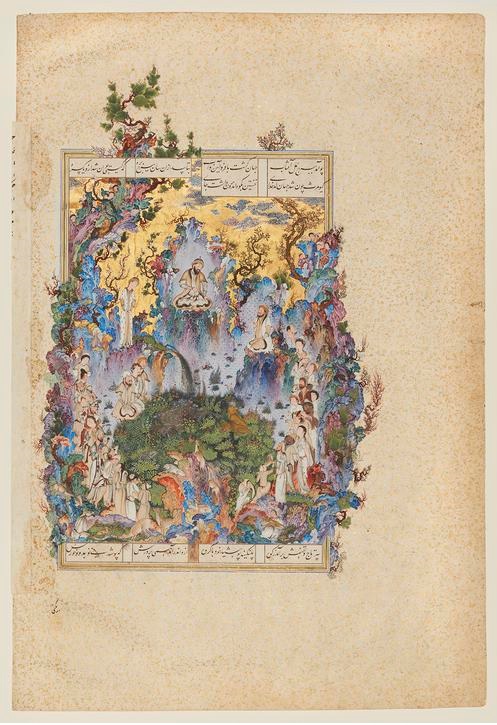 An image of folio Court of Gayumarfrom Firdawsi’s Book of Kings. This page is considered as one of the most exquisite pieces in the Aga Khan Museum collection, and has been recommended as one that every student must be taken to see. Photo: The Aga Khan Museum.