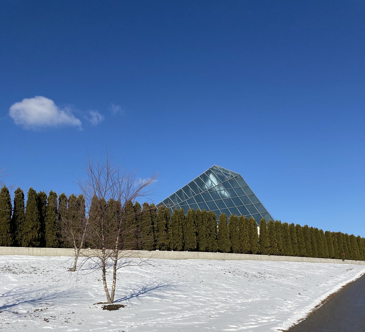 I cannot thank anyone but Mawlana Hazar Imam for his vision in conceiving and building three extraordinary spaces for the enjoyment of people in Toronto and everyone around the world. I am one of the lucky ones, who gets to visit the grounds as and when I like. February 14, 2021 was a very special day. There was beautiful light snow on the ground, the sky was blue and sunny, it wasn’t cold and the flags stood still in the absence of any windshield factor!
