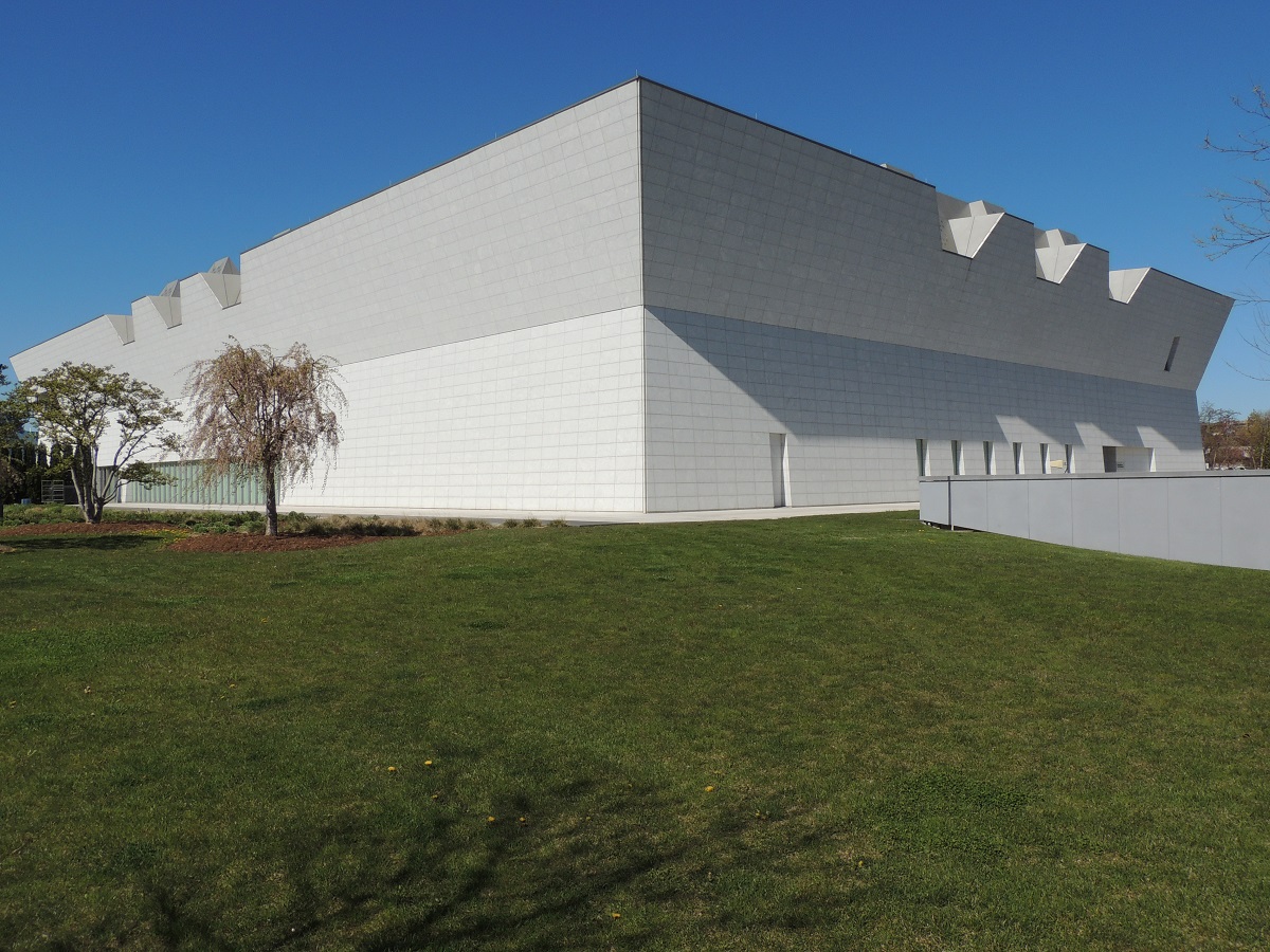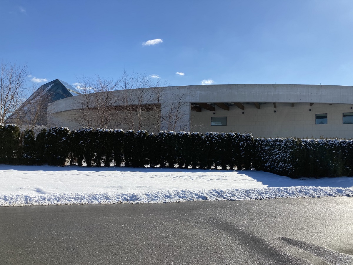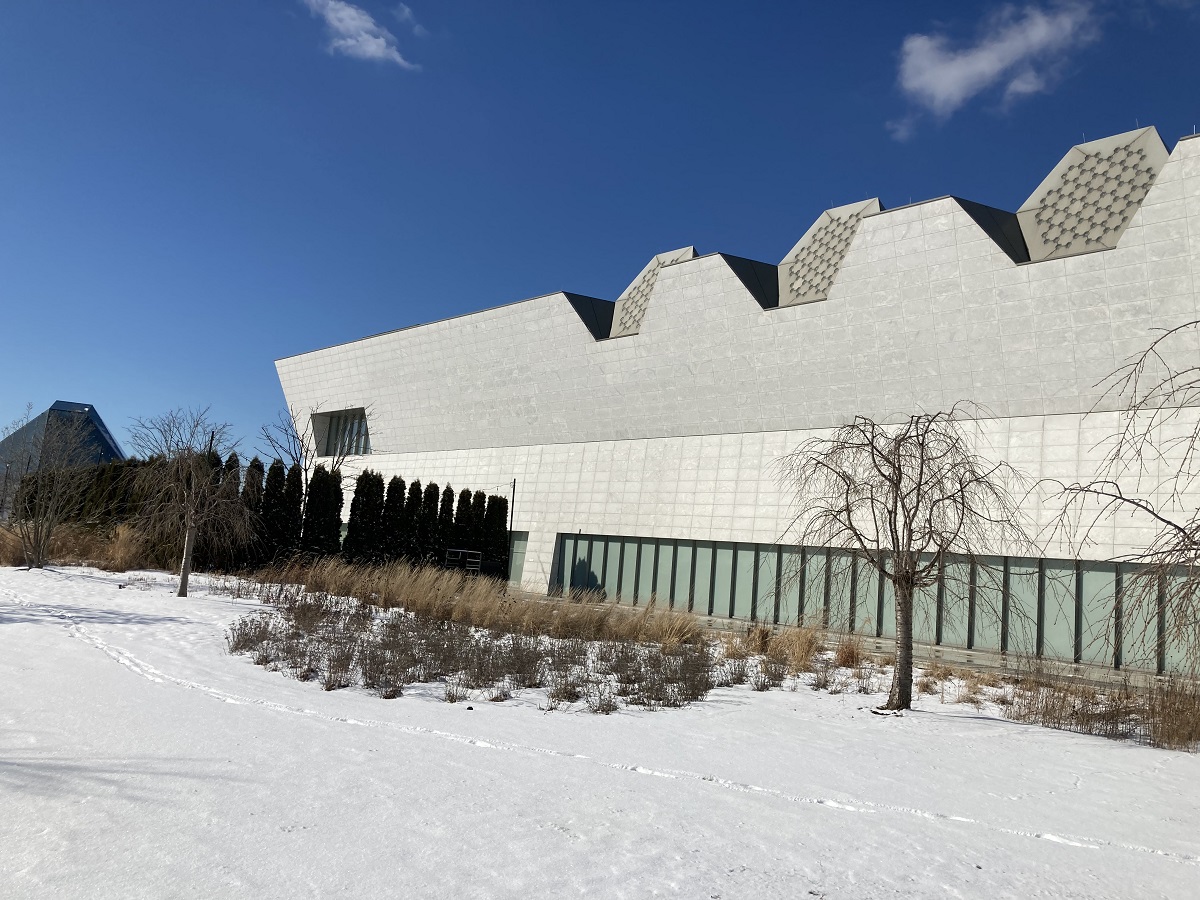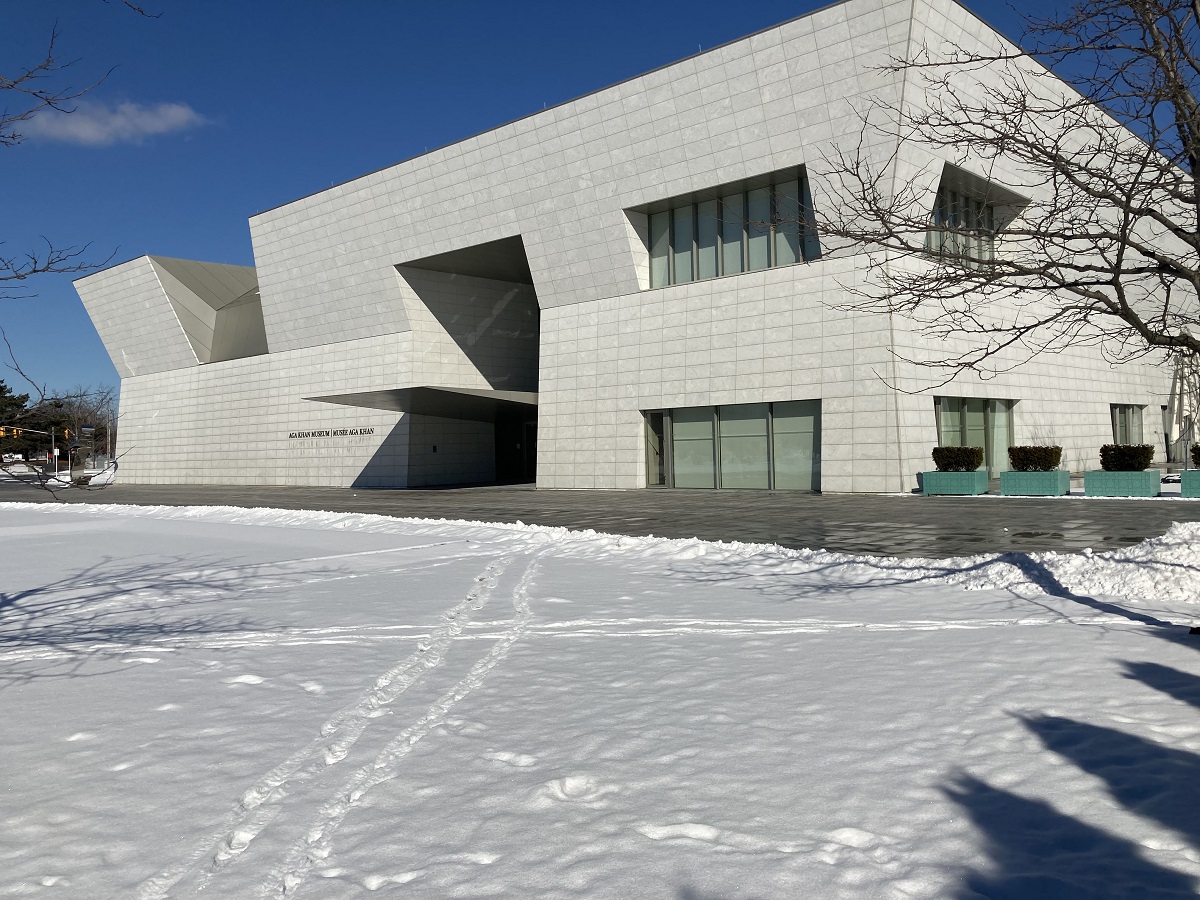 A view of the Aga Khan Museum’s main entrance bloc on February 14, 2021. Photo: Malik Merchant / Simerg.
