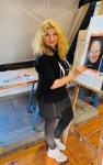 Work in progress, as Ismaili artist Shafina Jaffer paints a portrait of His Highness the Aga Khan in her studio in Dar es Salaam, Tanzania. The iconic artist was invited to the residence of the US Ambassador to Tanzania on US Independence Day, July 4, 2024, to exhibit her paintings featuring African women.