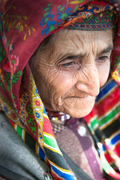 Picture of an old Ismaili lady in the Wakhan Corridor, near Afghanistan. She has a colourful scarf. Photo: Galibert Olivier’s Flickr photostream. Copyright.