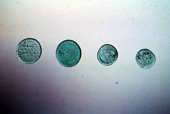 Three gold quarter dinars of the Fatimid Imam-Caliph al-Hakim (996-1020) were found on the shipwreck and about 15 gold clippings. Photo credit: INA. Copyright.