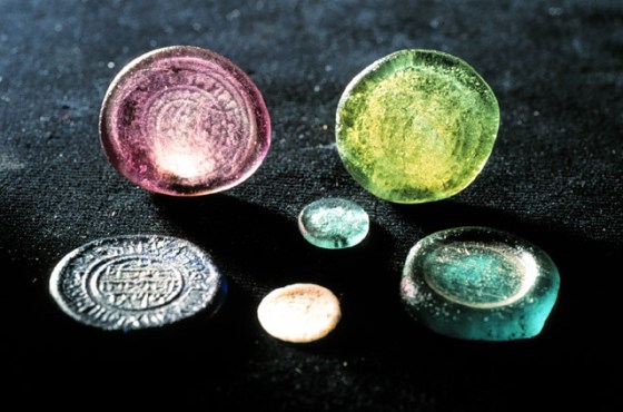 Four of the Fatimid glass weights. Photo credit: INA. Copyright.