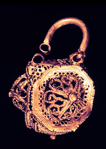 A beautiful filigree gold earring from the wreck is very probably a product of Fatimid Syria. Photo credit: INA. Copyright.