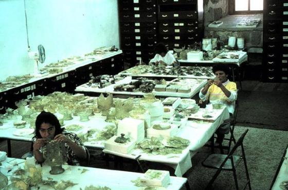 INA personnel in the Bodrum museum seen reconstructing glass vessels from glass fragments. Photo credit: INA. Copyright.