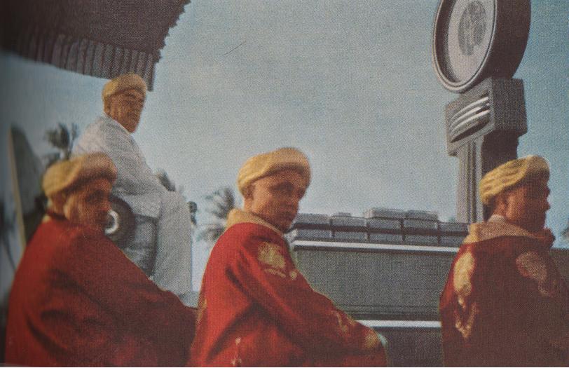 Imam Sultan Muhammad Shah speaks into a “Mike” at the Diamond Jubilee celebrations in Dar-es-Salaam. His weight in diamonds was the equivalent of over 640,000 Britsh pounds Photo: David Carnegie for the National Geographic, March 1947
