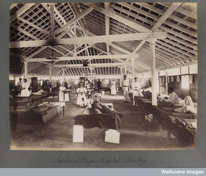 Interior of a temporary hospital for plague victims, Bombay plague epidemic, 1896-1897 Photo Credit: Wellcome Library, London. Wellcome Images. Copyright.