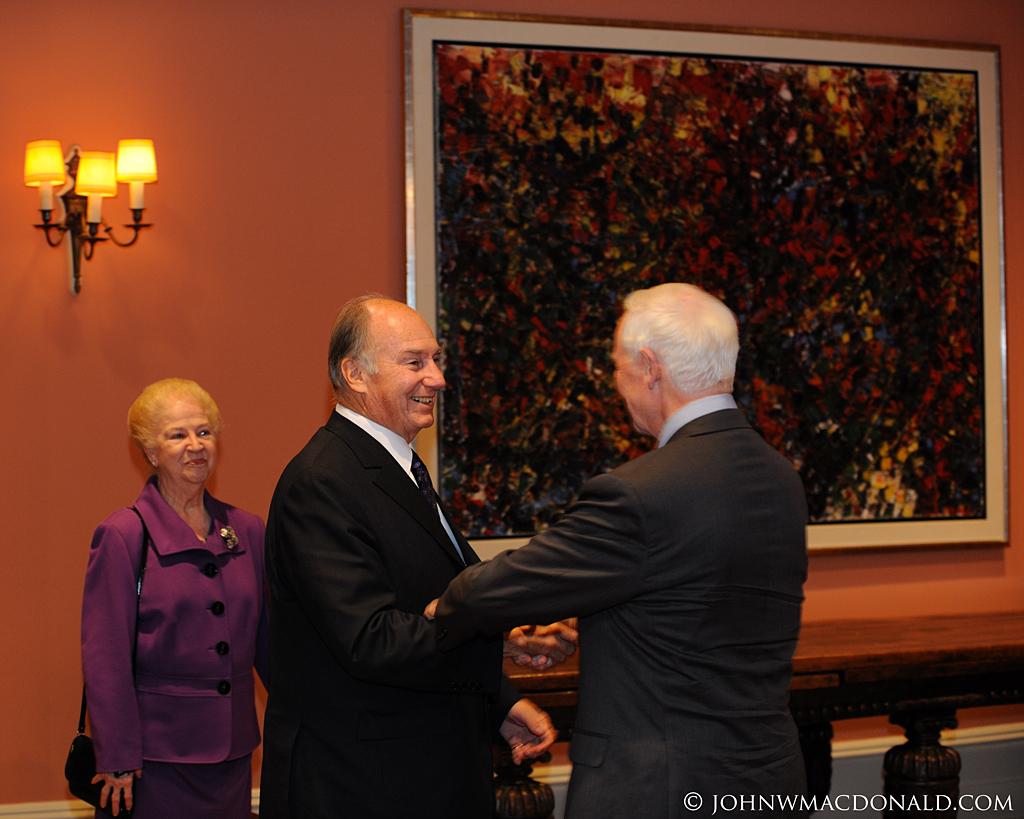 His Highness the Aga Khan and Governor General David Johnston in a conversation at Rideau Hall on October 7th, 2010. Photo: John W. MacDonald, Ottawa. Copyright. Please click image for enlargement.