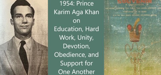 The Souvenir states that the Ismailis of Bharat were fortunate to have His Serene Highness Prince Karim Aga Khan in their midst in 1954. His words of wisdom, which he uttered on various occasions, were so full of meaning that everyone was highly impressed with his intellectual superiority and qualities of mind and heart.