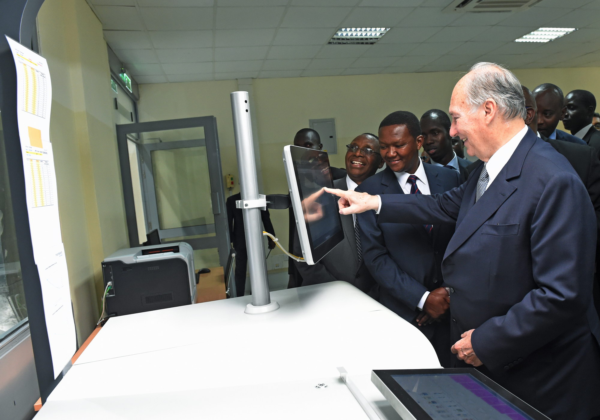 Te Aga Khan presses a button to launch Nation Media’s new printing press.