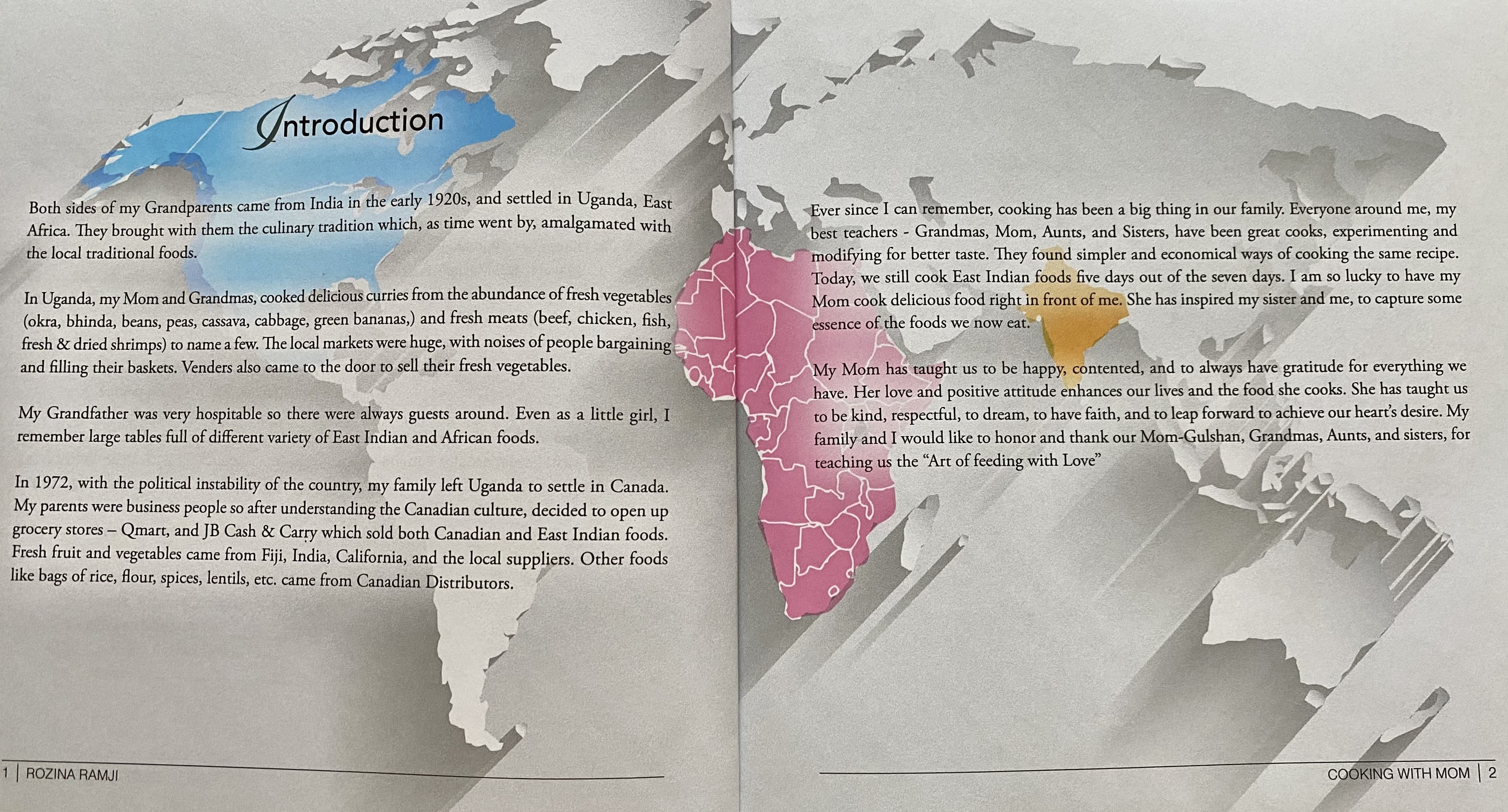 Rozina Ramji: To leave a legacy of my Mom’s cooking which the family has enjoyed for decades. Cooking has been a big part of our family culture and I have memories of the ladies (Grandmas, Aunts, and Mom) all cooking together, sharing techniques and conversing with each other. The cookbook was to cook with Mom and sharing time with her. I didn’t want to lose Mom’s recipes. The book is a great way to thank Mom and honour her and, thus, the title “Cooking with Mom.”