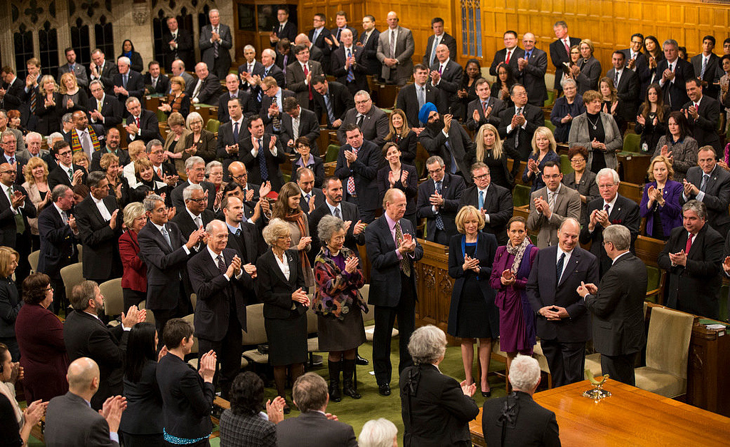 His Highness the Aga Khan seen addressing at the House of Commons Chambers to both the houses of Canadian Parliament on Thursday, February 27, 2014. Photo credit: The Office of the Prime Minister of Canada.