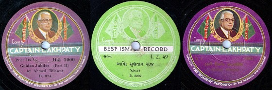 An examination of the listing of the individual recordings from Chandvakar’s collection identifies five enigmatic entries: Aavo Sultan Raj, Golden Jubilee Part 01, Golden Jubilee Part 02, and two listed as Captain Lakhpati. Further, the disc labels on these recordings provide some fascinating information. The disc label for Aavo Sultan Raj states: Compiled by ‘Best Ismaili Record’; the disc labels for Golden Jubilee and Captain Lakhpati state: Compiled by ‘Captain Lakhpaty’. This, undoubtedly, refers to Abdullah Jaffer Lakhpati, who is considered among the founders of the H. H. the Aga Khan Bombay Volunteer Corps, and who was also a versatile poet and artist. It is known that Lakhpati was appointed as Captain of the Volunteer Corps in February 1936. With this reference date, as well as upon listening to the recordings, it is clear that these geets were most likely composed to commemorate the Golden Jubilee of Imam Sultan Mahomed Shah, Aga Khan III, in 1935-36. To date, therefore, these are the earliest musical recordings of geets.
