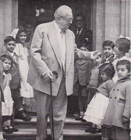 Ismaili children greeting Mawlana Sultan Mahomed Shah during his visit to 51 Kensington Court on July 18, 1953. Photo: Ilm magazine