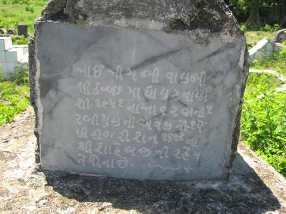 I had never seen tombstones etched in Gujerati. I later discovered that Sewa Haji Paroo had also donated the land for the graveyard in Mombasa, and there are similar old Gujerati inscriptions.