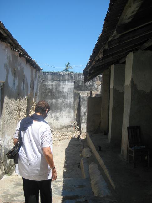Several local families seemed to be occupying their own small areas of the ground floor. Women were cooking the midday meals over charcoal jikos, while a few men and small children reclined in the cool of the yard. Bagamoyo is a siesta town. One of the women introduced herself as the caretaker’s wife.