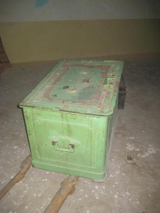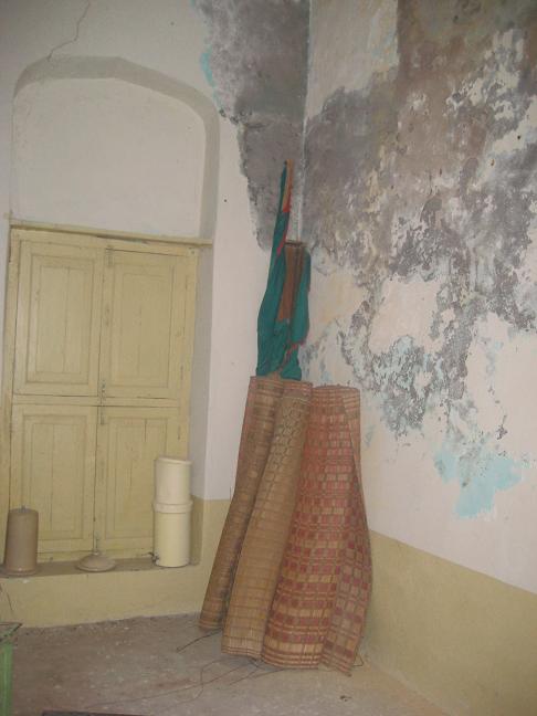 We returned to the building and the caretaker’s wife led us up the broad stairs to the prayer hall, passing the sadris, the prayer mats, all rolled up, and the red and green flag of the Ismailis, that too rolled up. On the upper floor was a heavy old safe, a symbol that this had once been a flourishing wealthy large jamat.